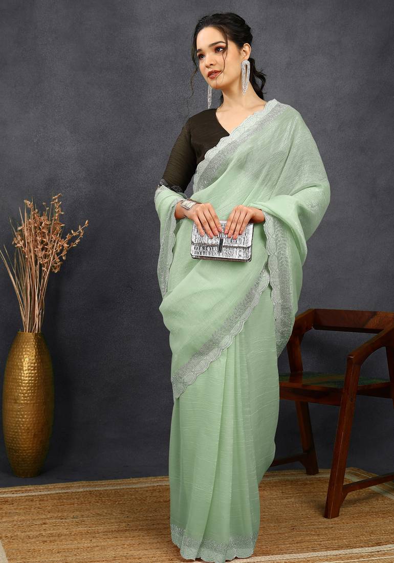 | Product Name | Party Wear Silk Blend Crush Embellished Saree With Unstiched Blouse Piece Pista Green | |