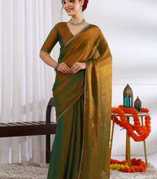 Party wear silk blend zari woven saree with unstiched blouse pieceDark mustard