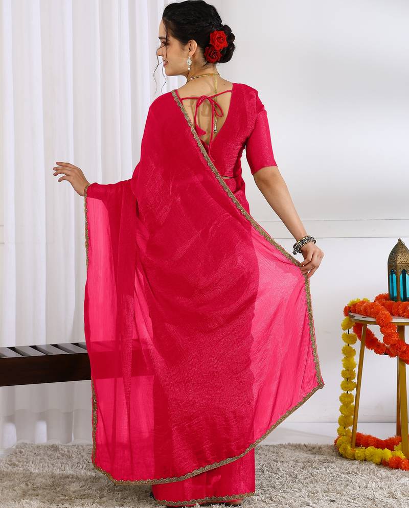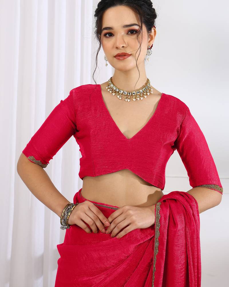 Party wear silk blend zari woven saree with unstiched blouse pieceDark pink