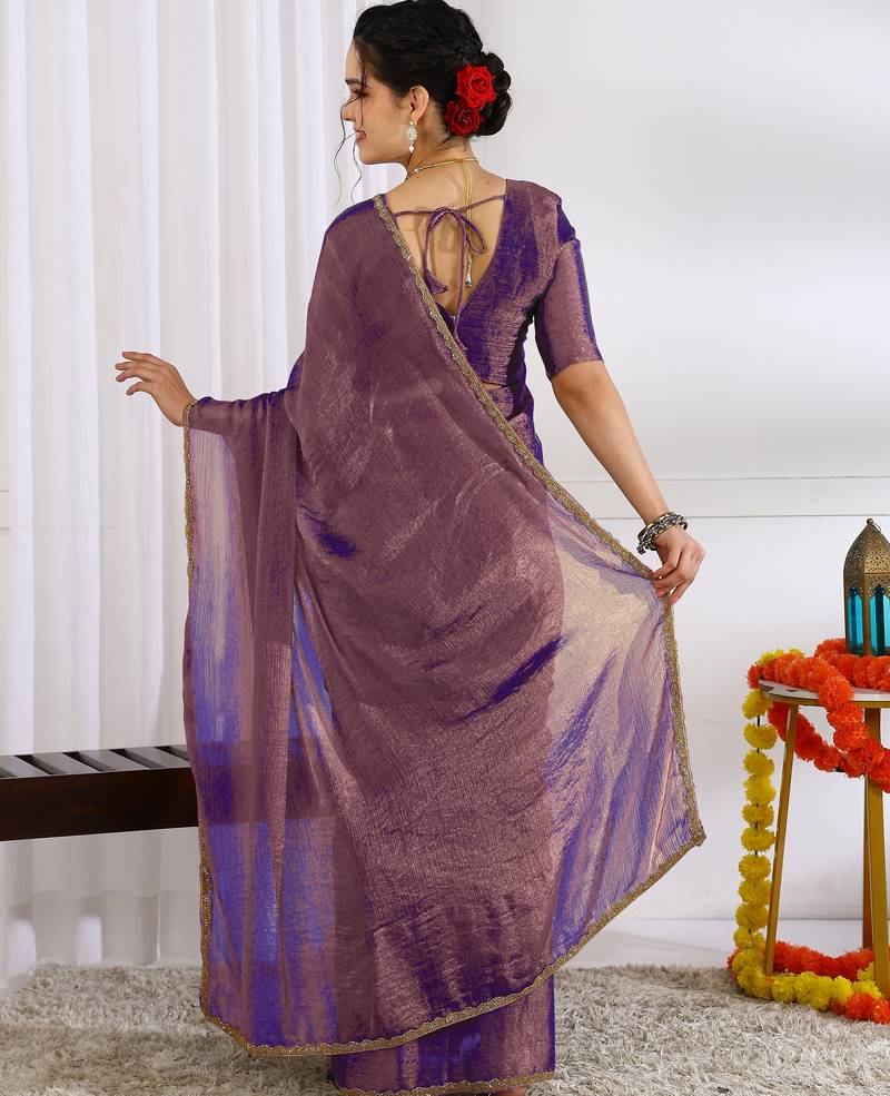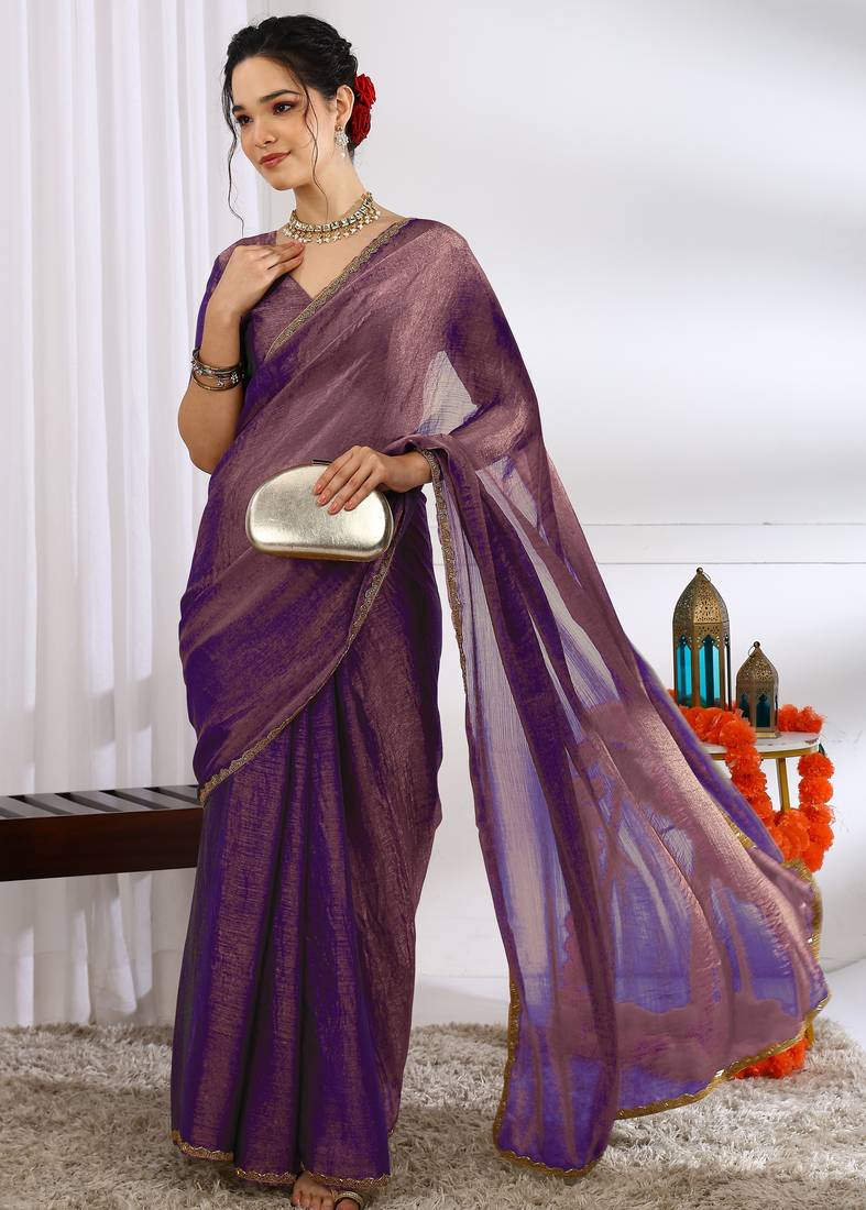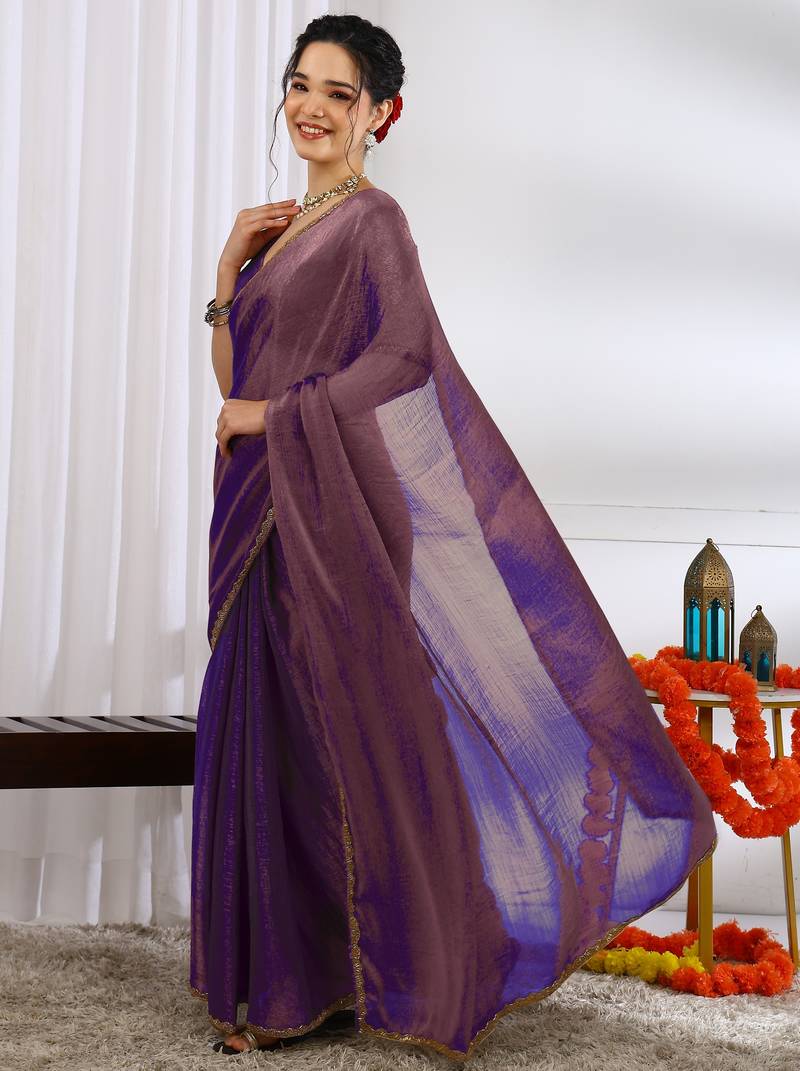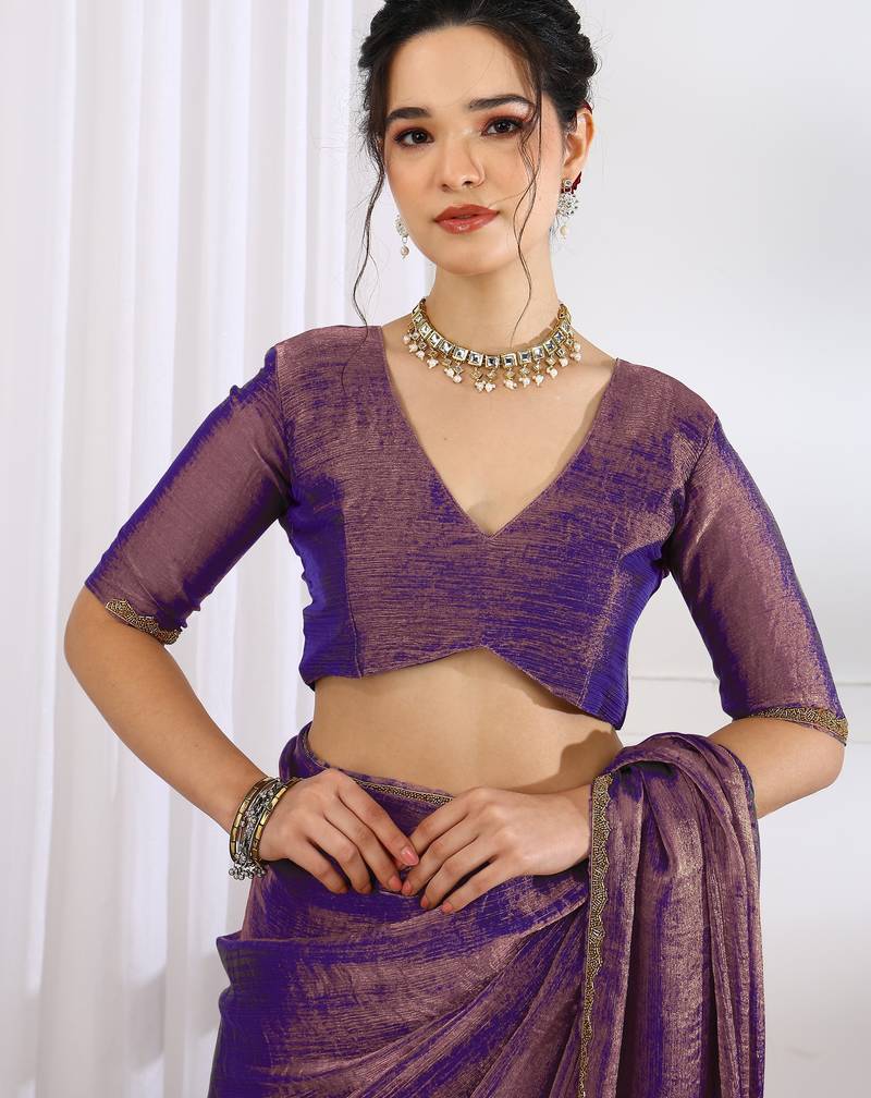 Party wear silk blend zari woven saree with unstiched blouse pieceDark purple