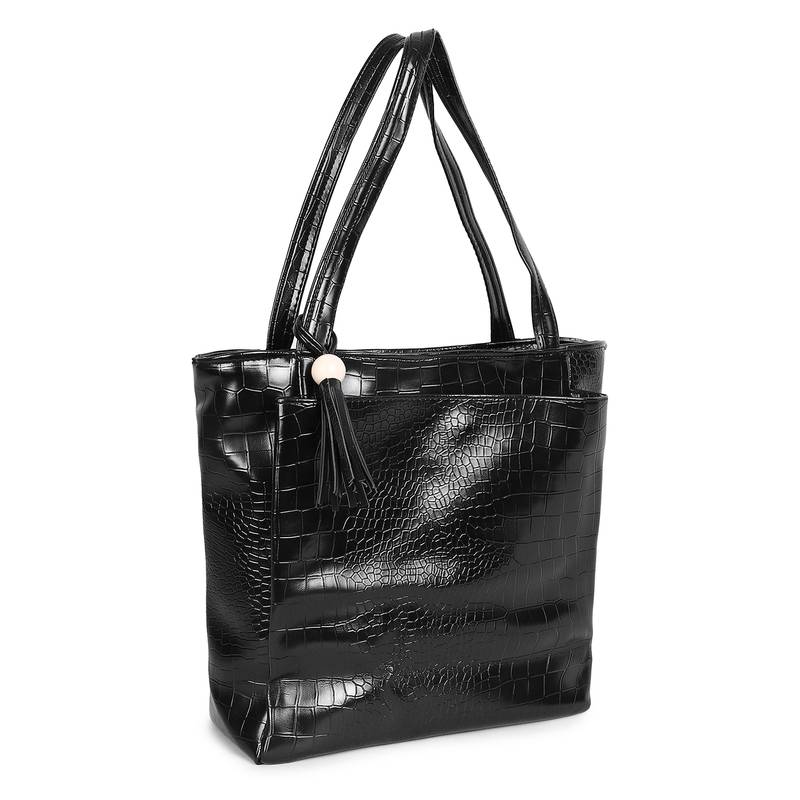 | Product Description | Step Into Effortless Elegance With This Textured Tote From Veronly. Crafted From Premium Faux Leather, It Features A Sleek Croc Embossed Texture Paired With A Chic Tassel Charm And Pearl Detail — Making It The Ultimate Blend Of Style And Sophistication. The Spacious Zippered Compartment Easily Holds All Your Essentials, While The Sturdy Double Handles Ensure All Day Comfort. Whether It’s For Work, Shopping, Or Casual Outings, This Bag Complements Every Look With Timeless Charm. |