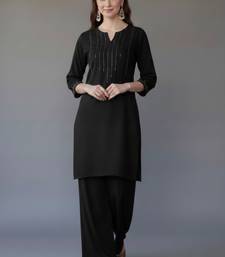 Black embroidered rayon kurta set stitched