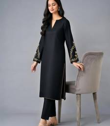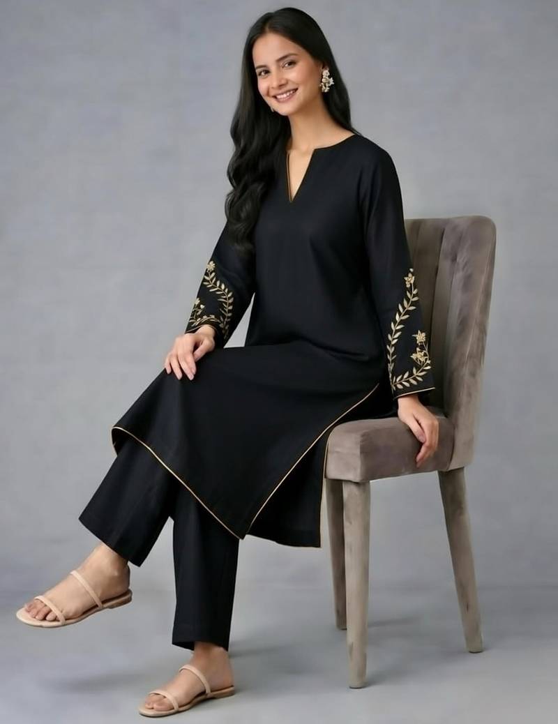 Black embroidered rayon kurta set stitched