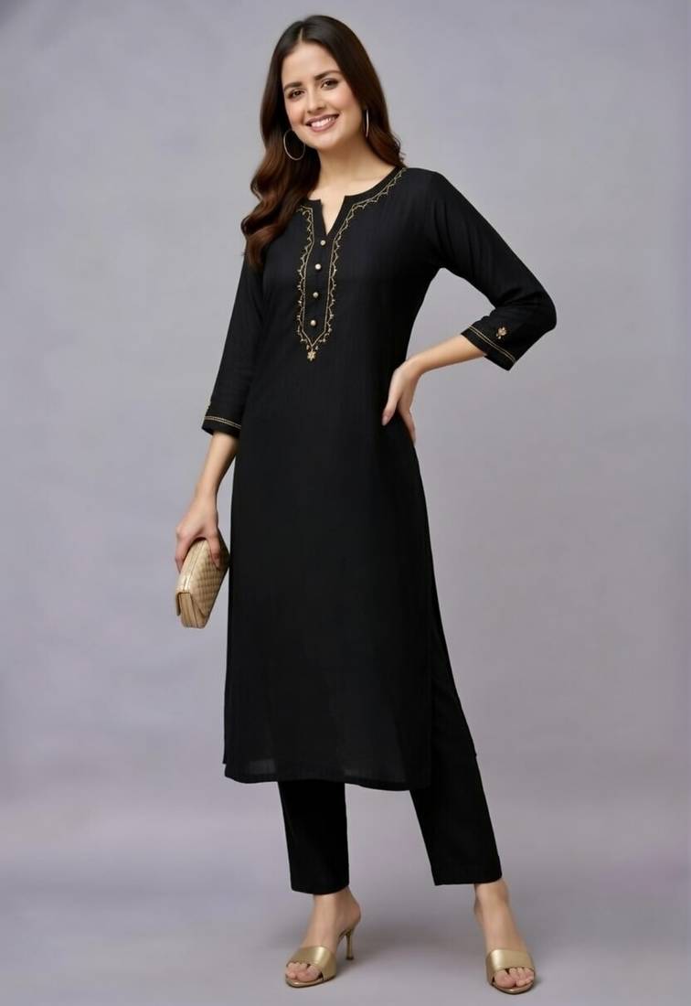 | Product Name | Black Embroidered Rayon Kurta Set | |