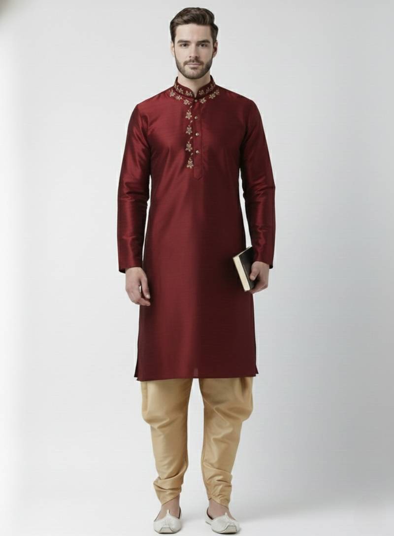 | Product Name | Maroon Embroidered Dupion Silk Kurta Set | |