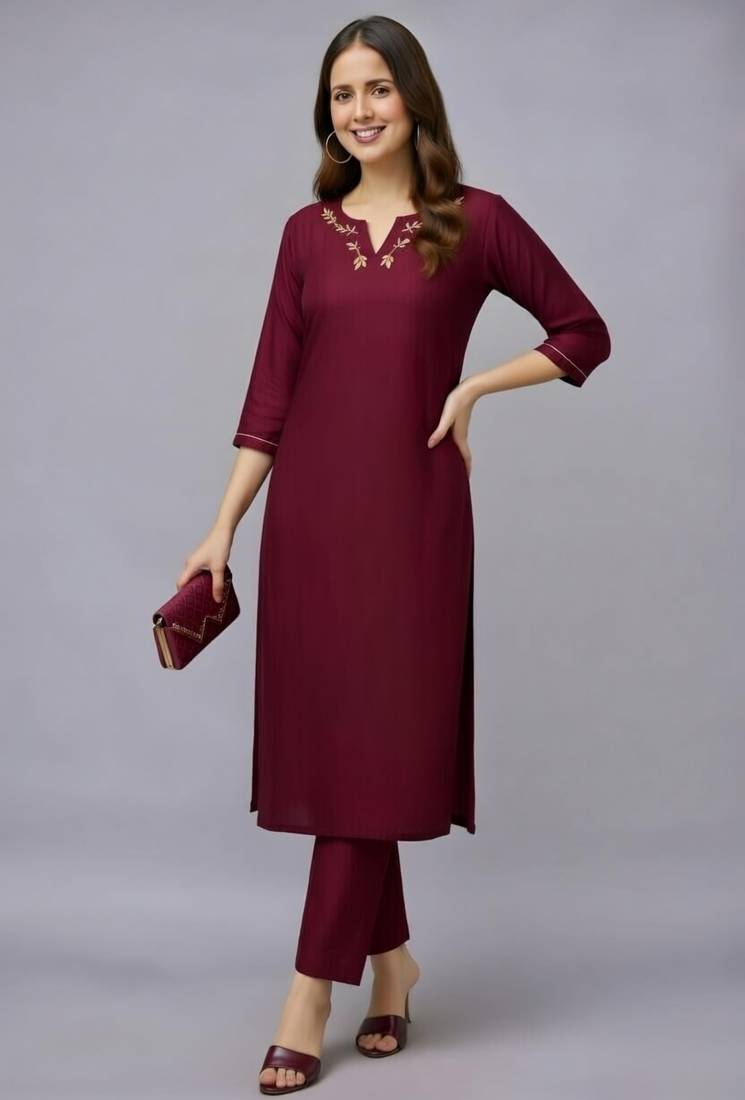 | Product Name | Maroon Embroidered Rayon Kurta Set | |
