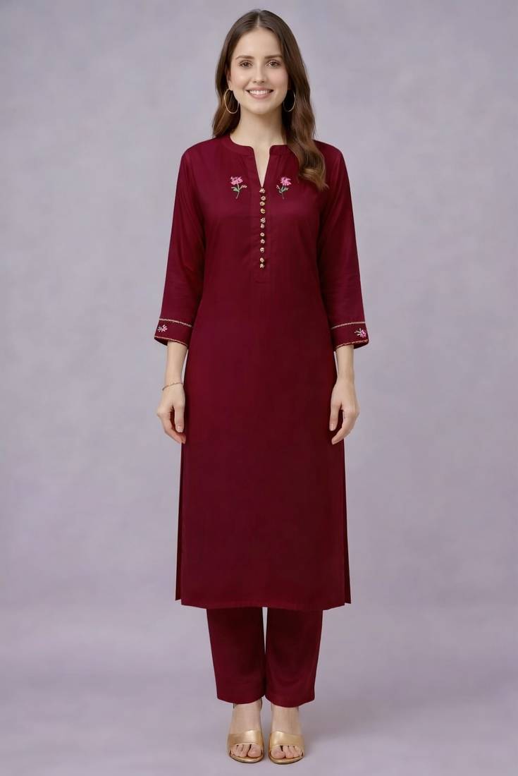 | Product Name | Maroon Embroidered Rayon Kurta Set | |