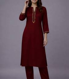 Maroon embroidered rayon kurta set stitched