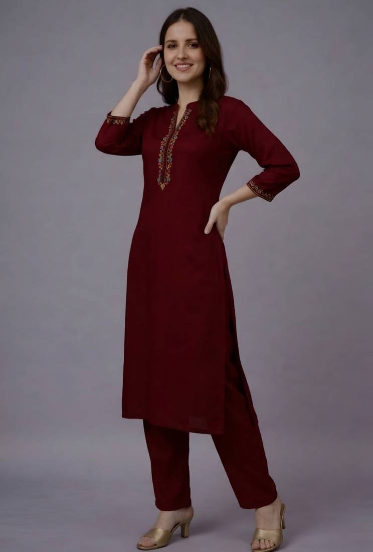 | Product Name | Maroon Embroidered Rayon Kurta Set | |