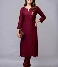Maroon embroidered rayon kurta set stitched