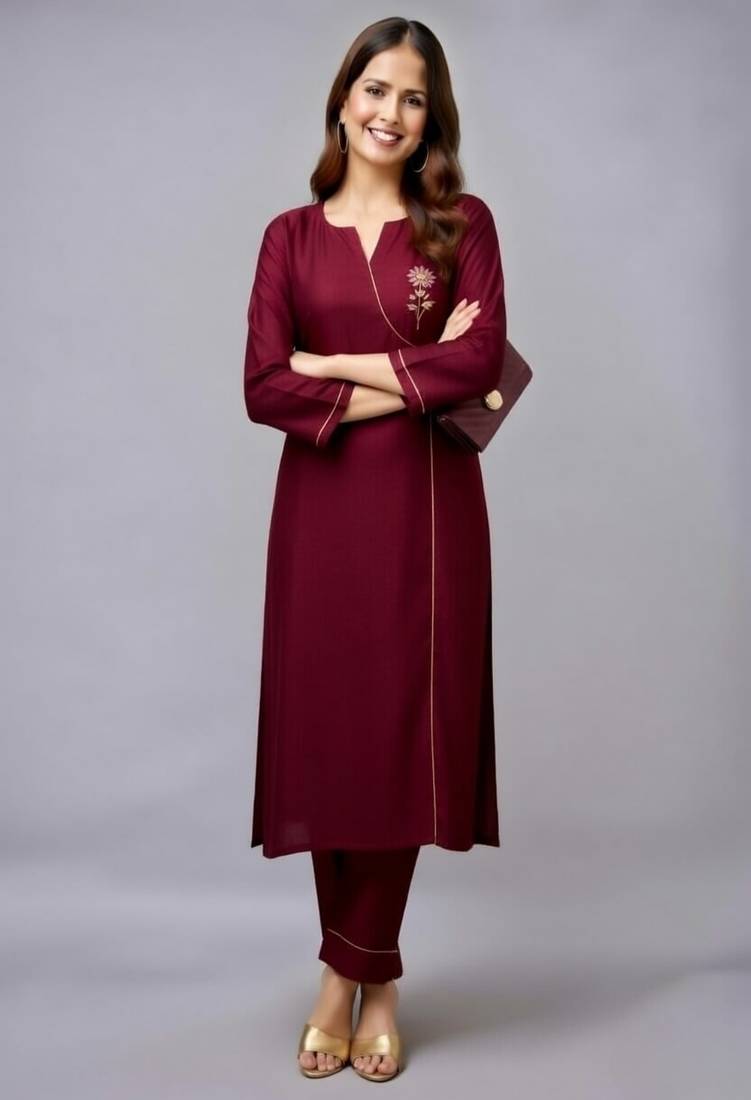 | Product Name | Maroon Embroidered Rayon Kurta Set | |