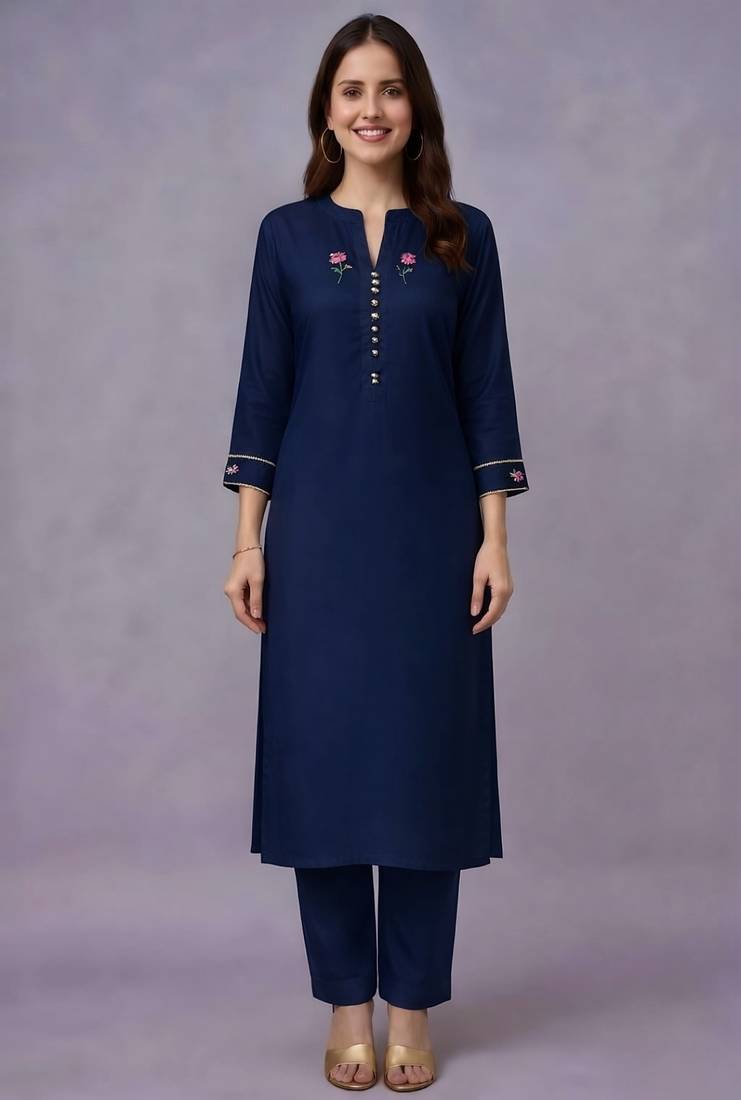 | Product Name | Navy Embroidered Rayon Kurta Set | |