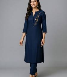 Product Name Navy Embroidered Rayon Kurta Set