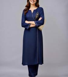 Navy embroidered rayon kurta set stitched