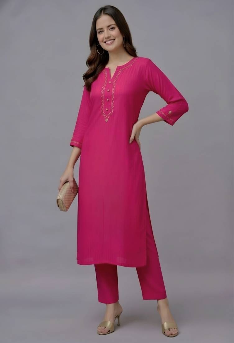 | Product Name | Pink Embroidered Rayon Kurta Set | |