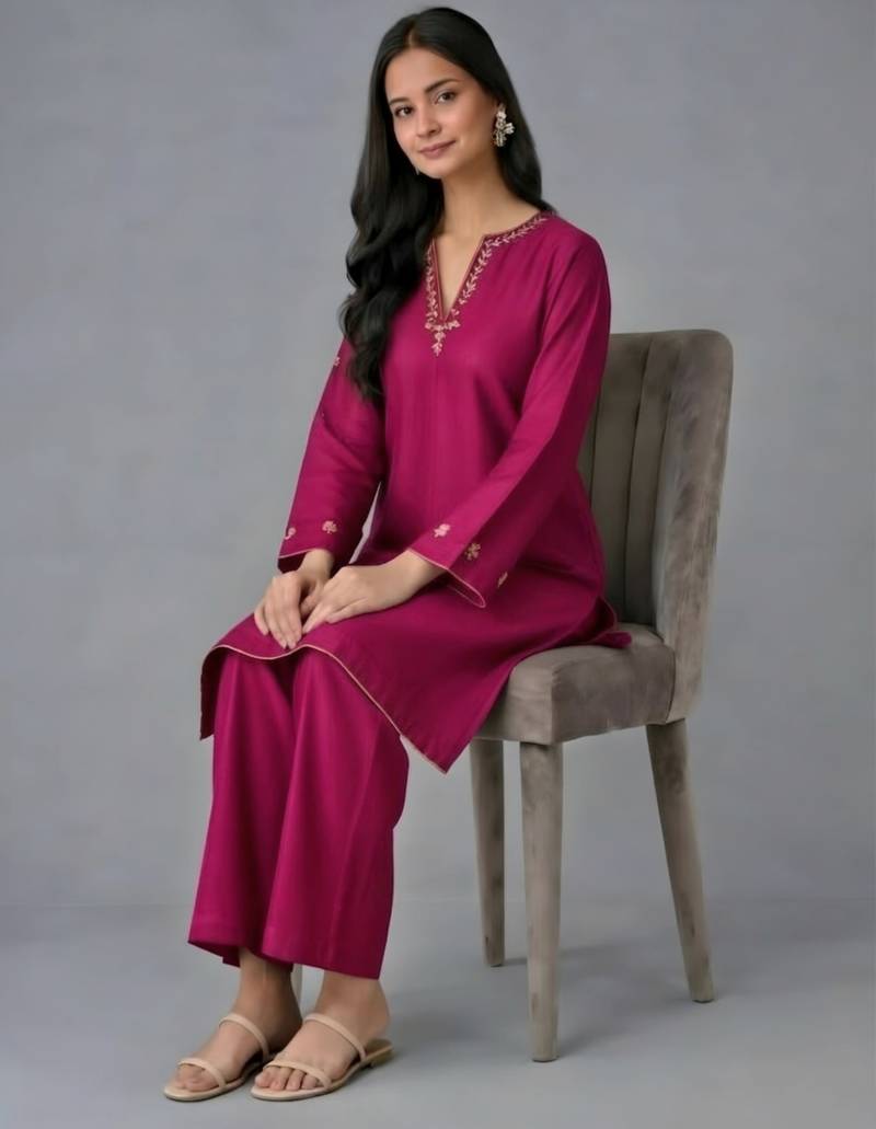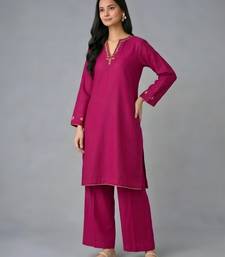 Pink embroidered rayon kurta set stitched