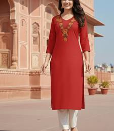 Red embroidered rayon kurta set stitched