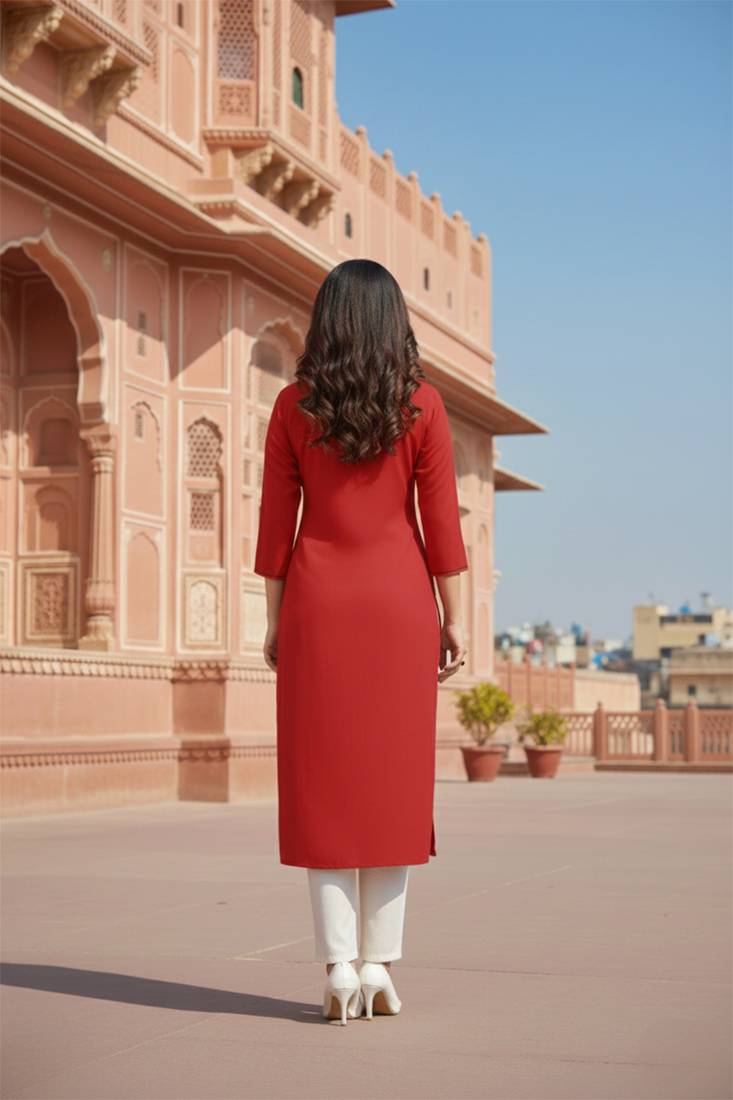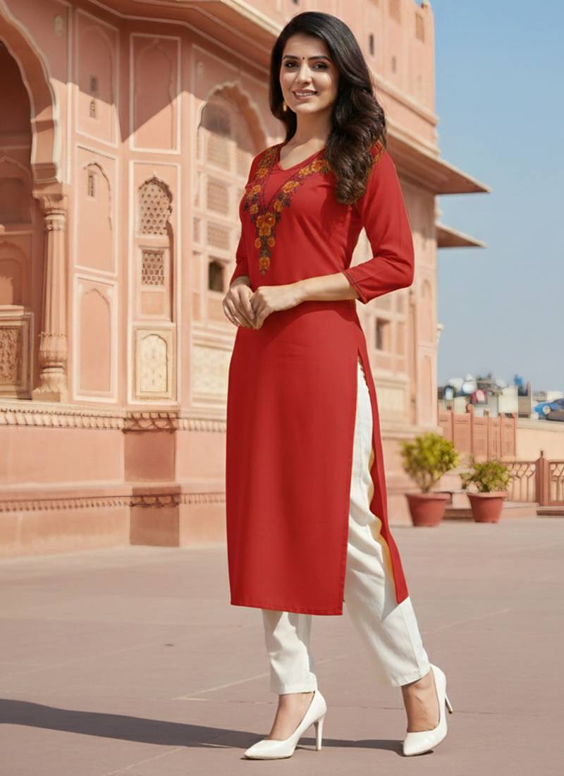 | Product Name | Red Embroidered Rayon Kurta Set | |