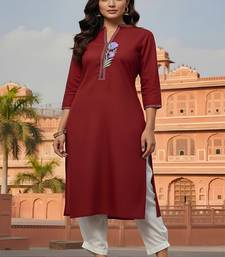 Red embroidered rayon kurta set stitched