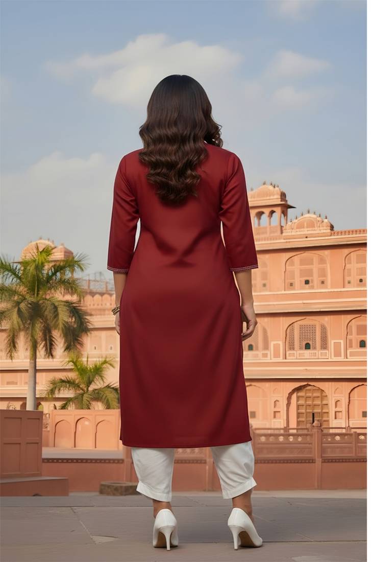 | Product Name | Red Embroidered Rayon Kurta Set | |