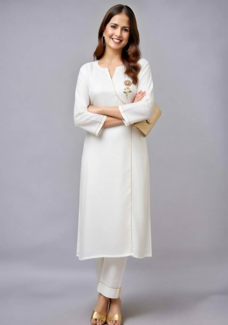 | Product Name | White Embroidered Rayon Kurta Set | |