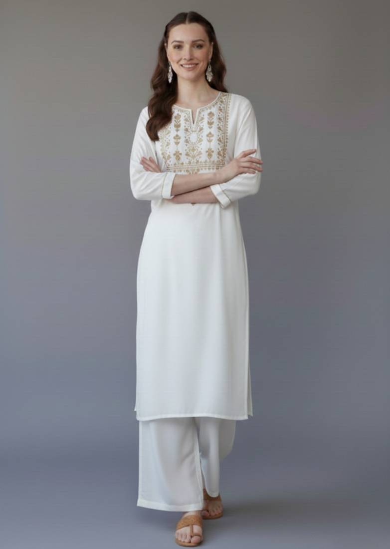 | Product Name | White Embroidered Rayon Kurta Set | |