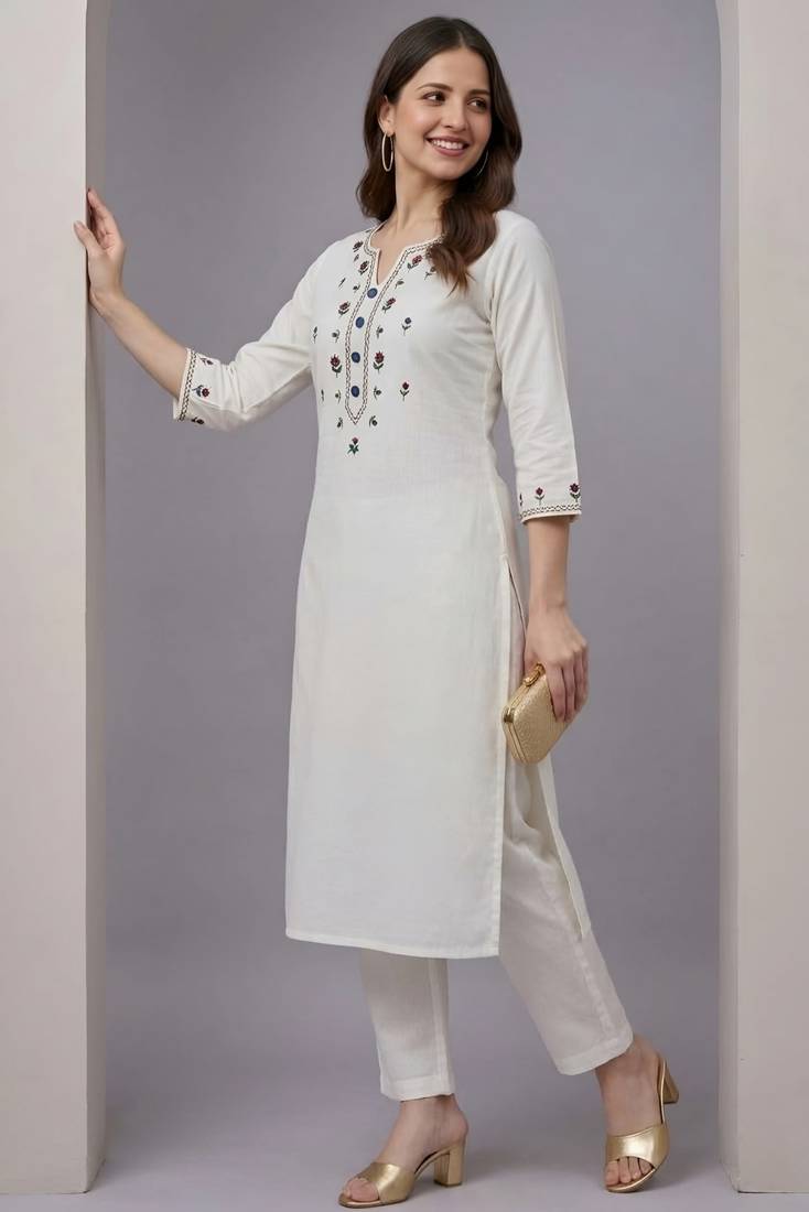 | Product Name | White Embroidered Rayon Kurta Set | |