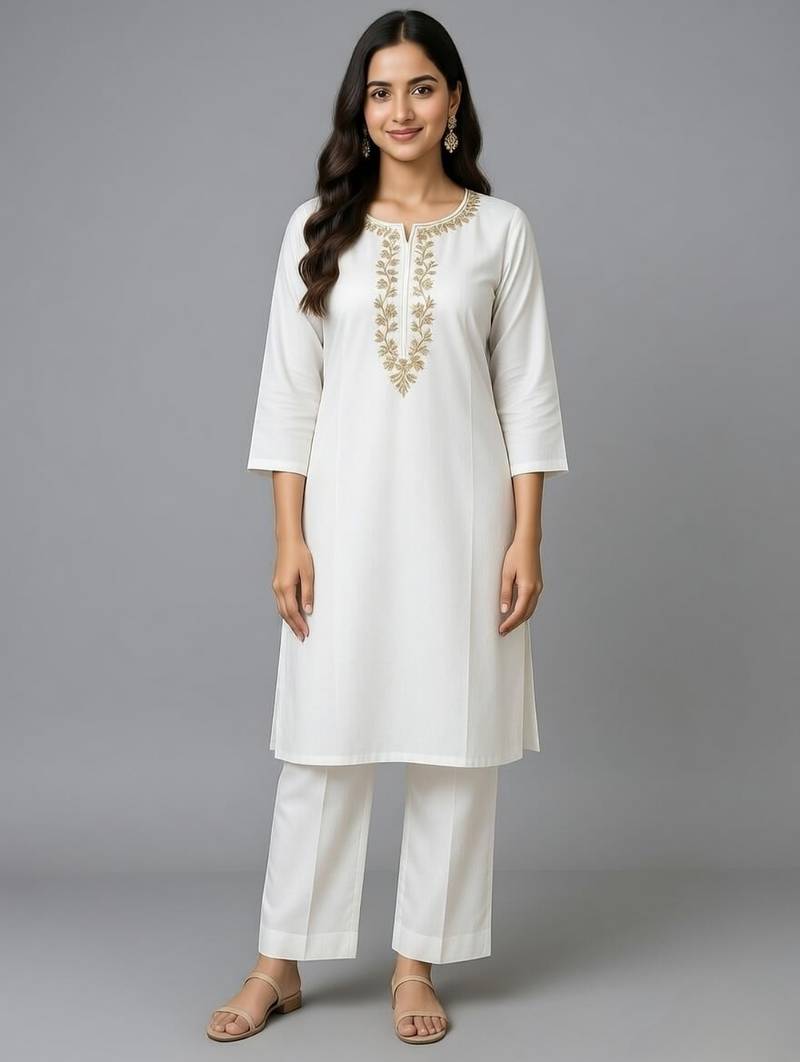 | Product Name | White Embroidered Rayon Kurta Set | |