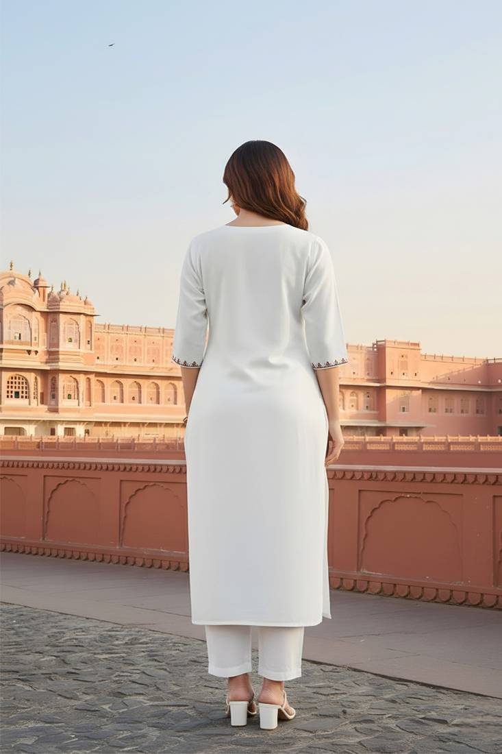 | Product Name | White Embroidered Rayon Kurta Set | |