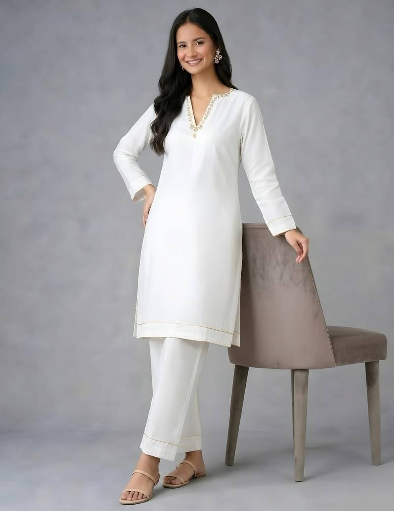 | Product Name | White Embroidered Rayon Kurta Set | |
