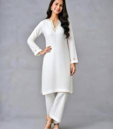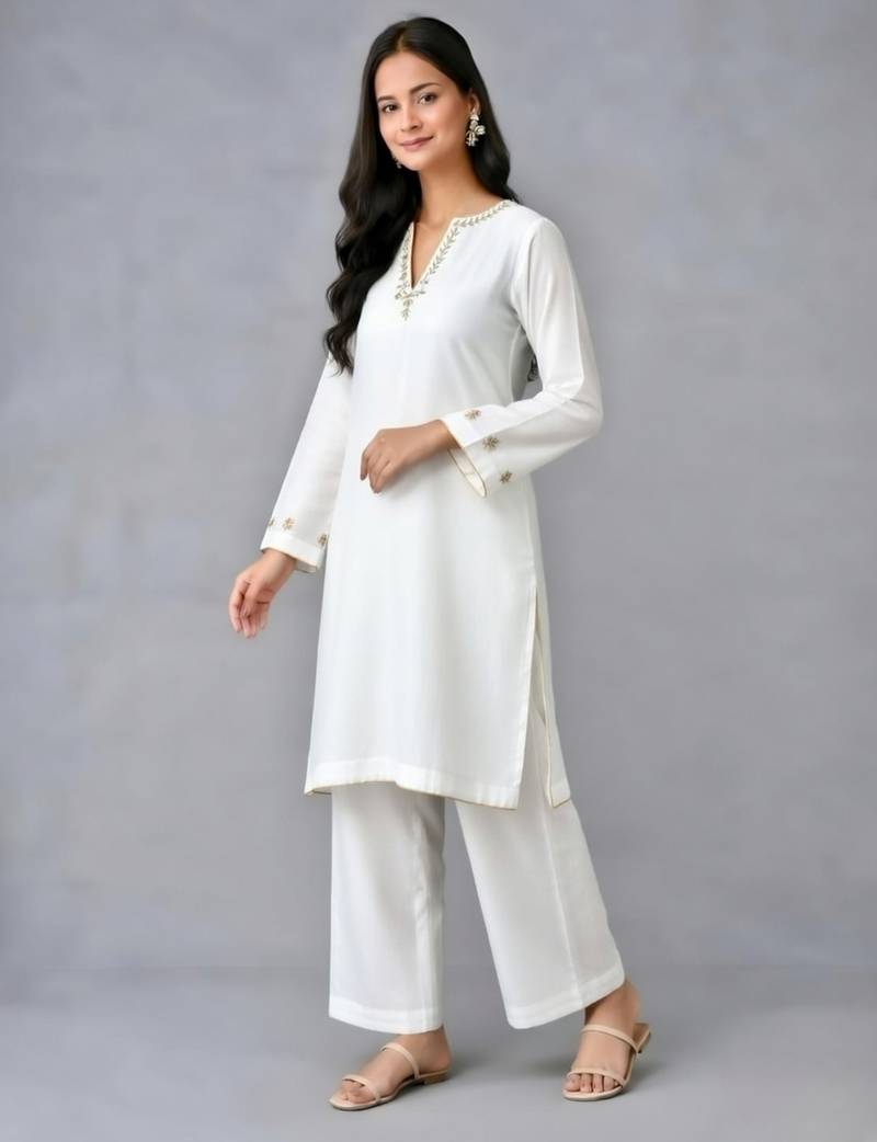 White embroidered rayon kurta set stitched