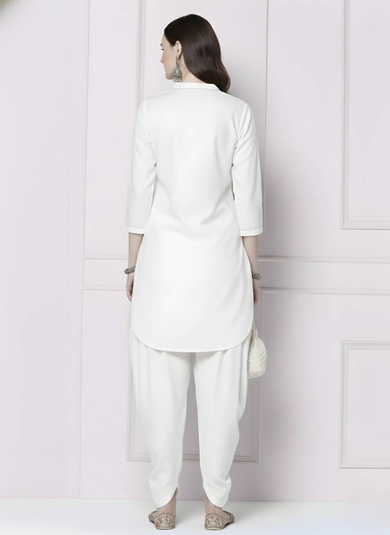| Product Name | White Embroidered Rayon Kurta With Dhoti Pant | |