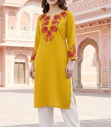 Yellow embroidered rayon kurta set stitched