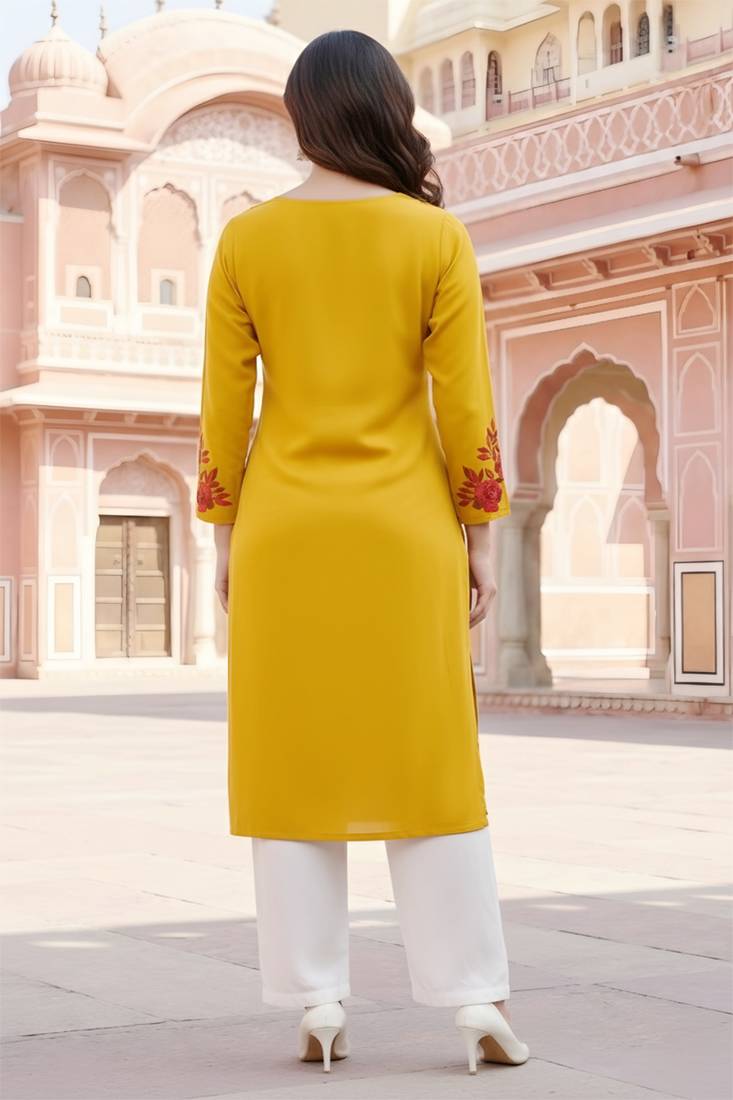 | Product Name | Yellow Embroidered Rayon Kurta Set | |
