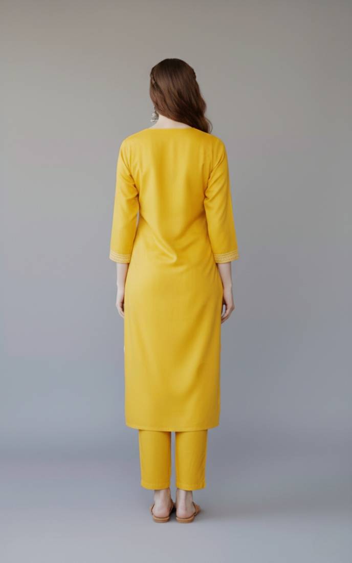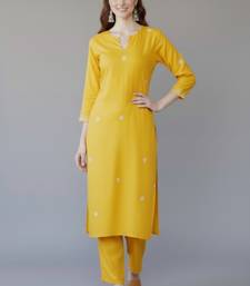 | Product Name | Yellow Embroidered Rayon Kurta Set | |