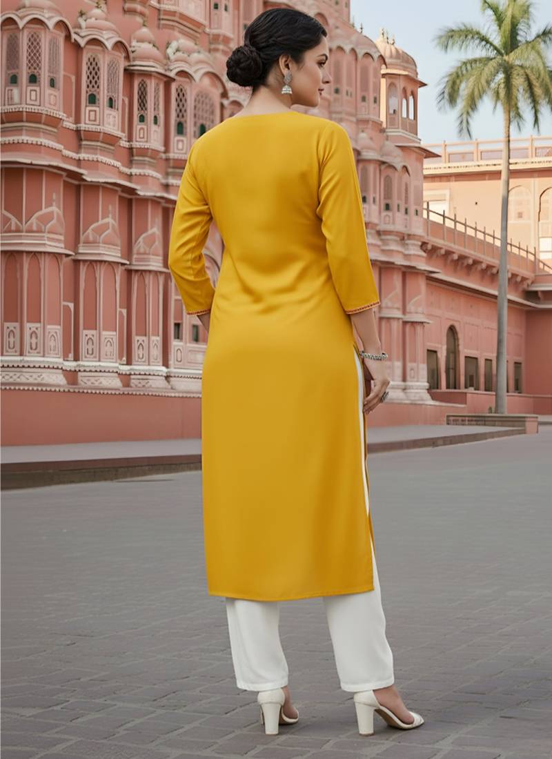 | Product Name | Yellow Embroidered Rayon Kurta Set | |