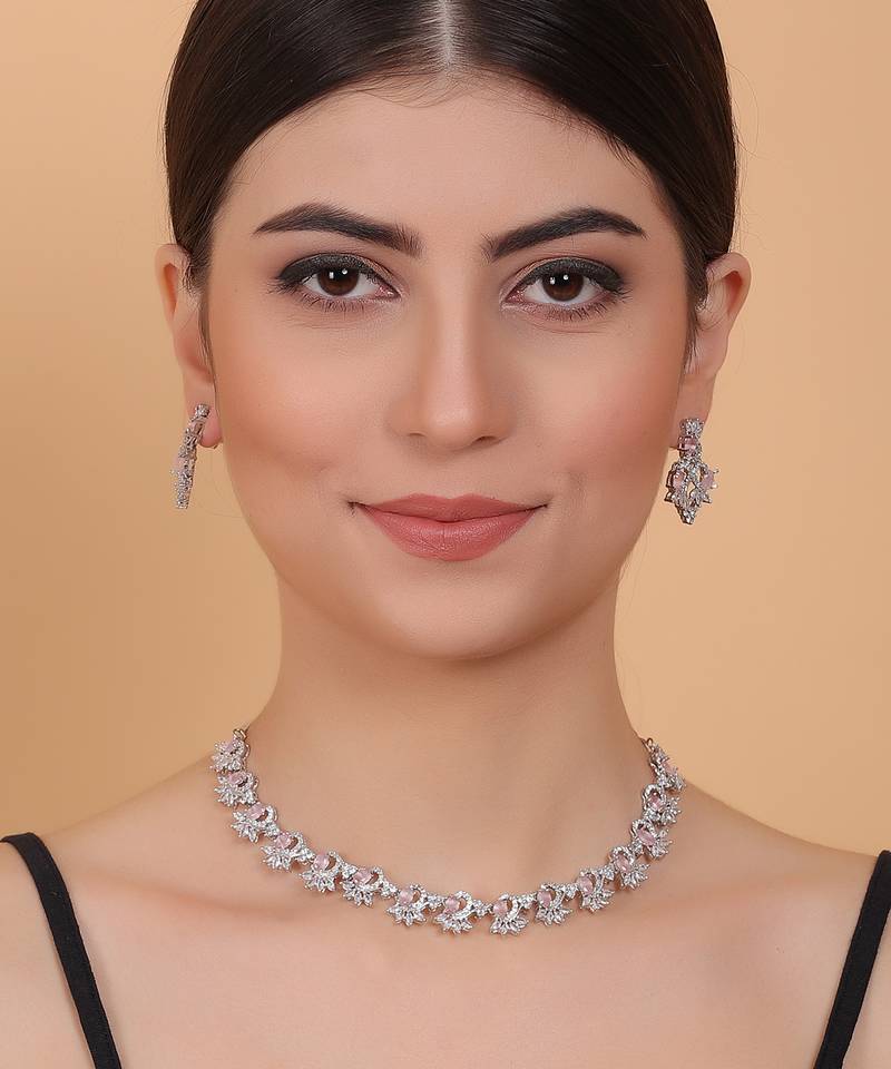 | Speciality | Elegant Pink American Diamond Sleek Necklace Set | |