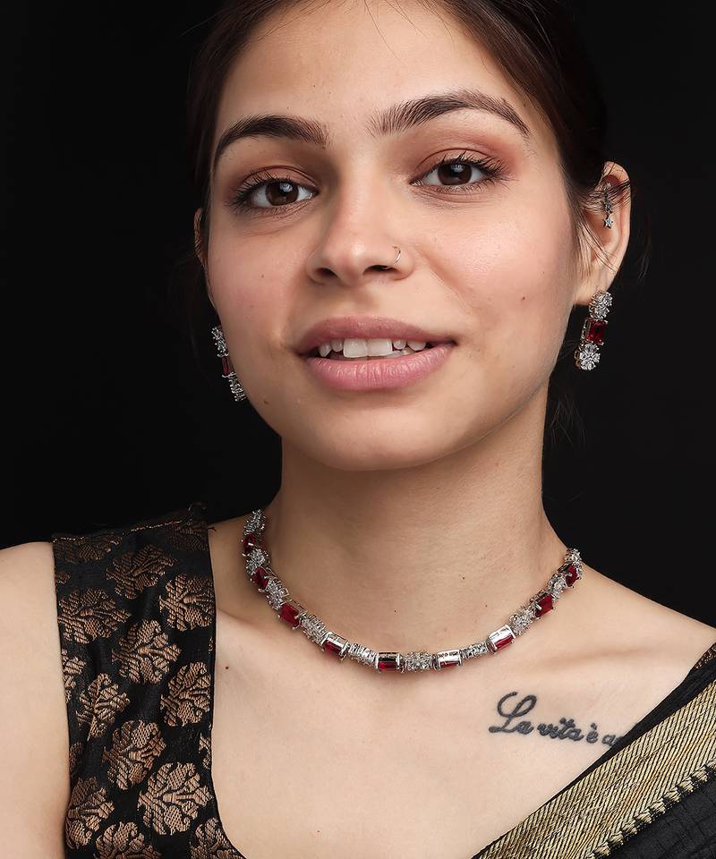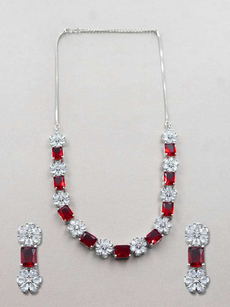 | Speciality | Exquisite Red Flower Motif Cz Sleek Necklace Set | |