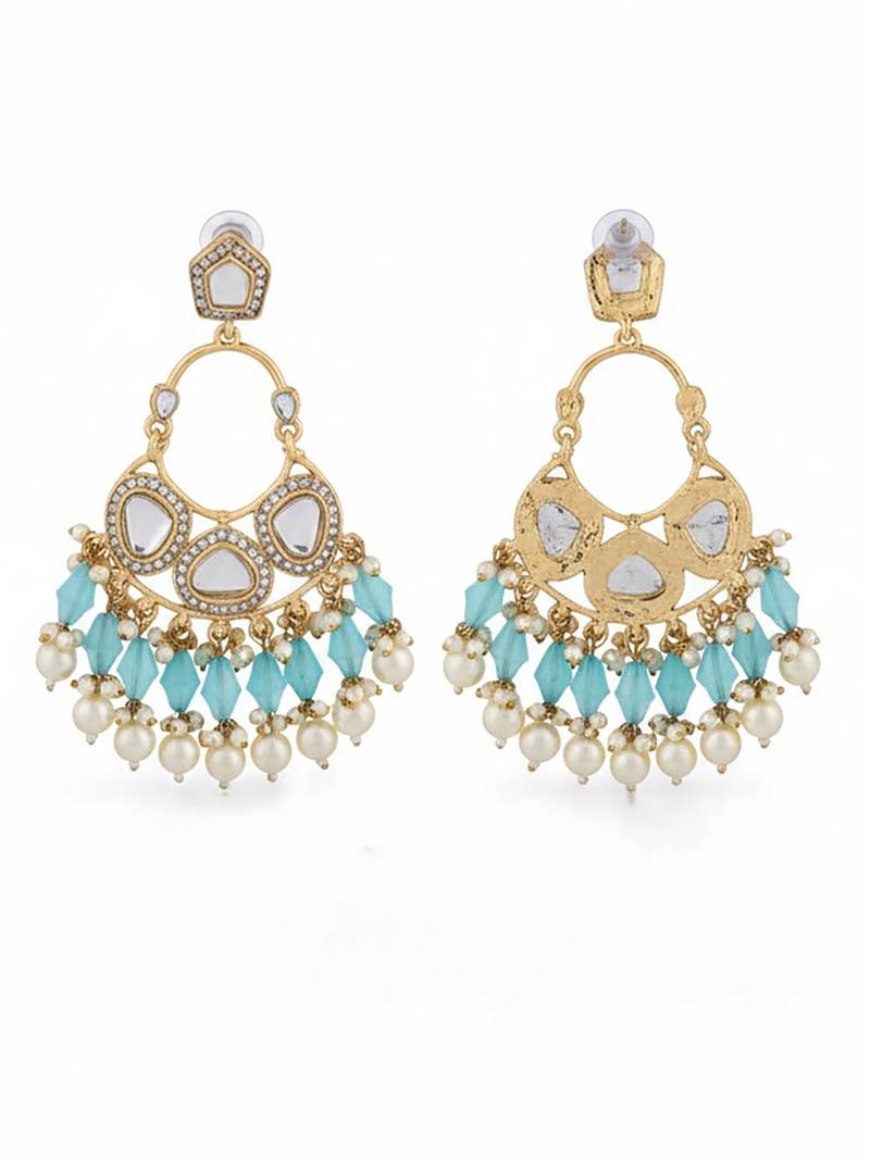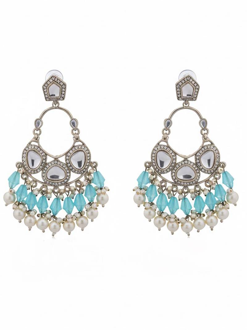 Product Name Lightblue Handmade Mirror Work Chandbali With Pearl Drops