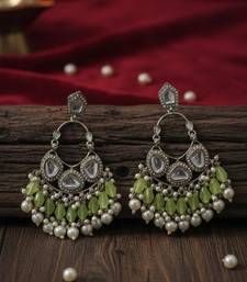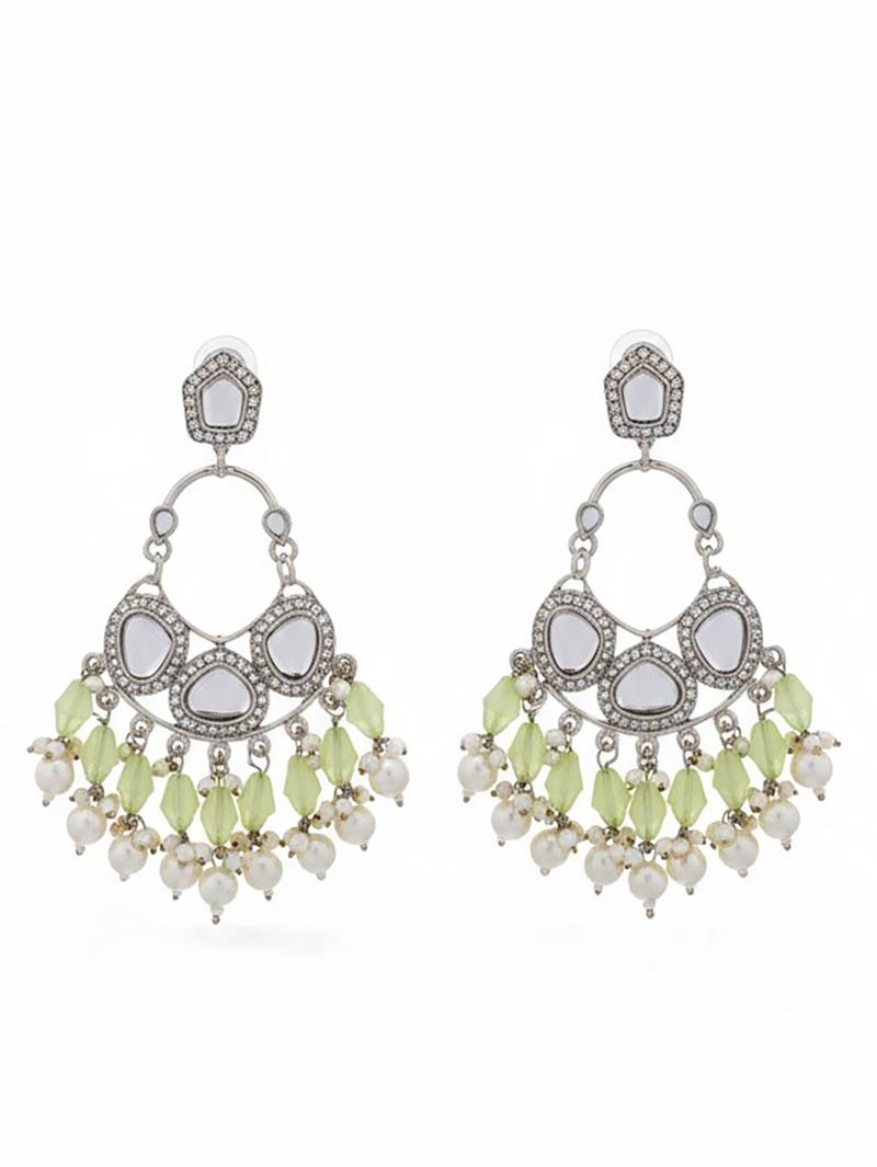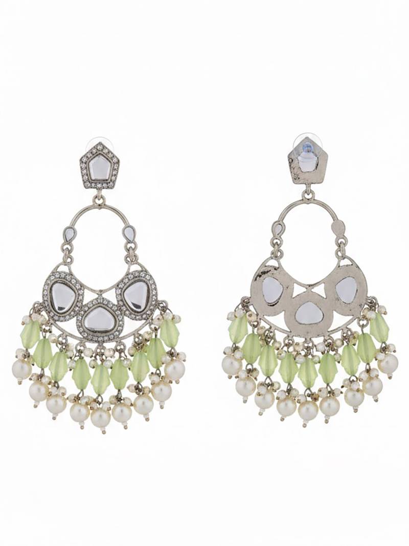 | Speciality | Light Green Handmade Mirror Work Chandbali With Pearl Drops | |