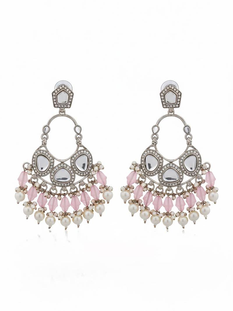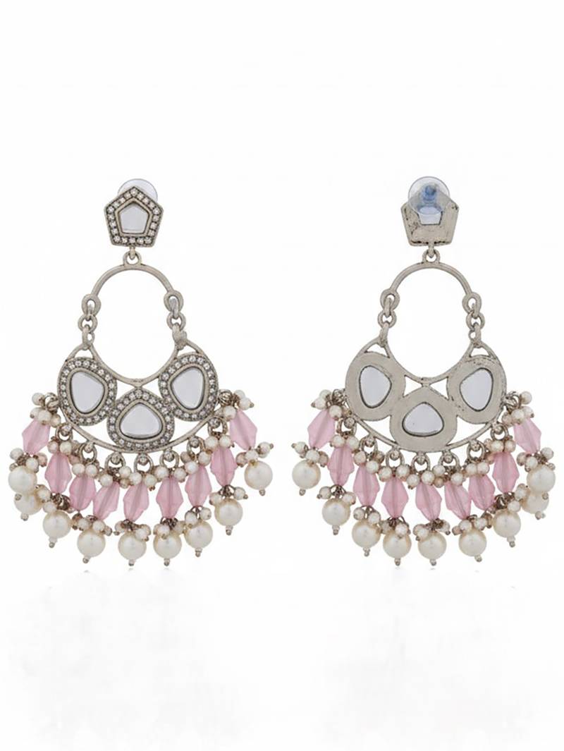 Product Name Lightpink Handmade Mirror Work Chandbali With Pearl Drops