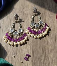 | Product Name | Purple Handmade Mirror Work Chandbali With Pearl Drops | |
