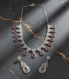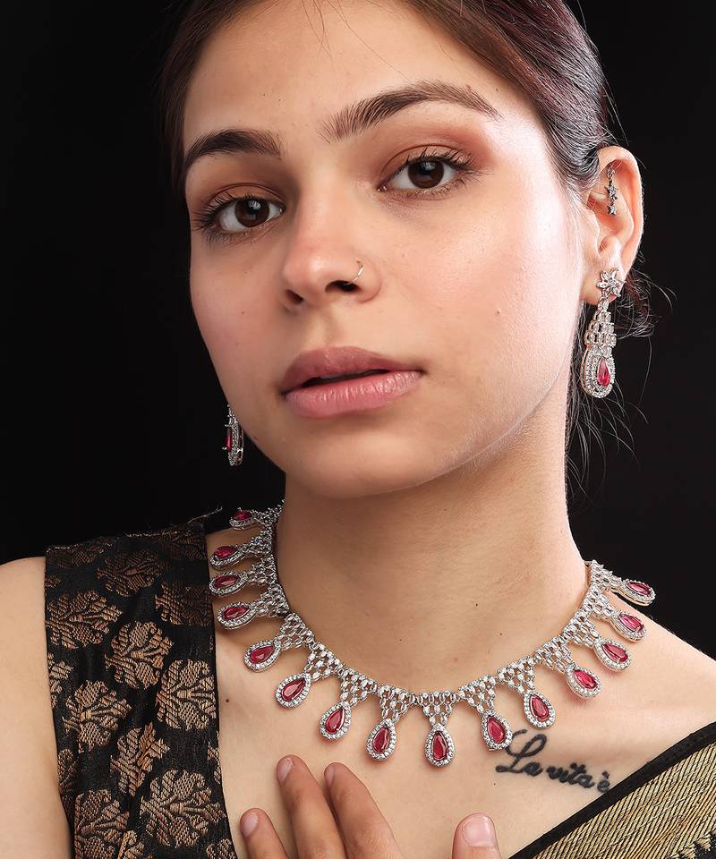 Product Name Red Ad Cz Tear Drop Statement Necklace Set