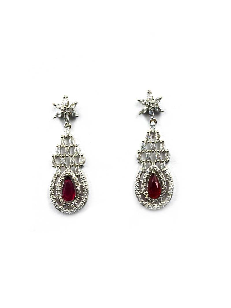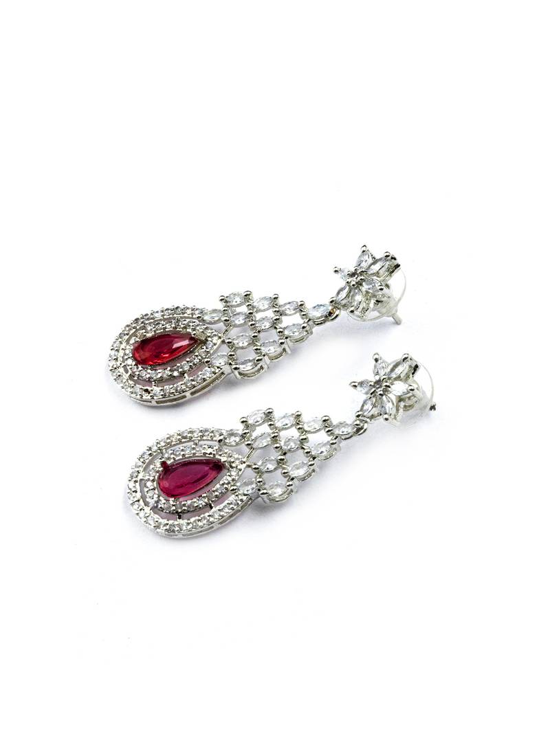 Speciality Red Ad Cz Tear Drop Statement Necklace Set