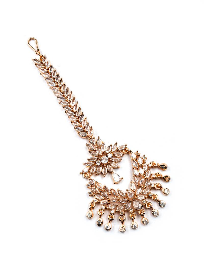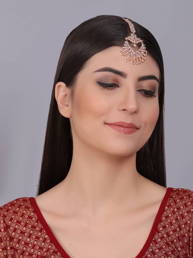 Product Description | The Jewelry Set Consists Of A Mangtika. The Rose Gold Plated Ad Studded Handcrafted Mangtika Has Intricated Detail. It Is