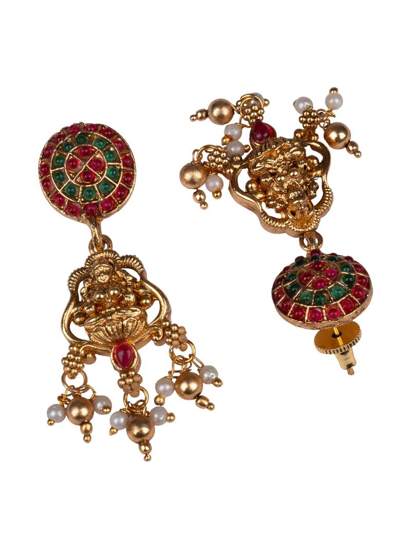 Inspired By Classic South Indian Temple Jewellery, This Necklace Set Features Intricate Detailing With An Antique Gold Finish.