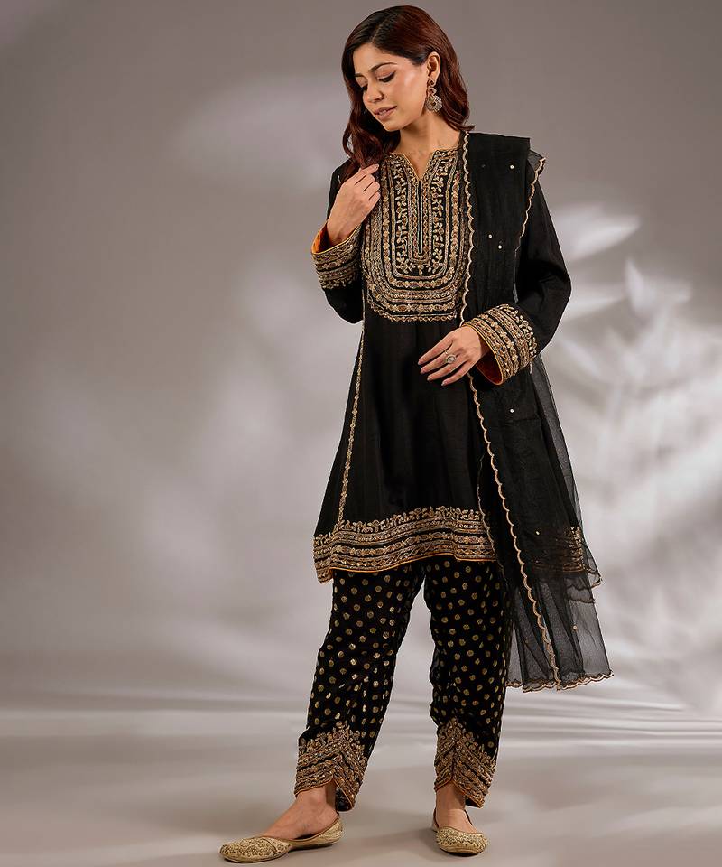 | Product Name | Black Embroidered Silk Kurta Set | |
