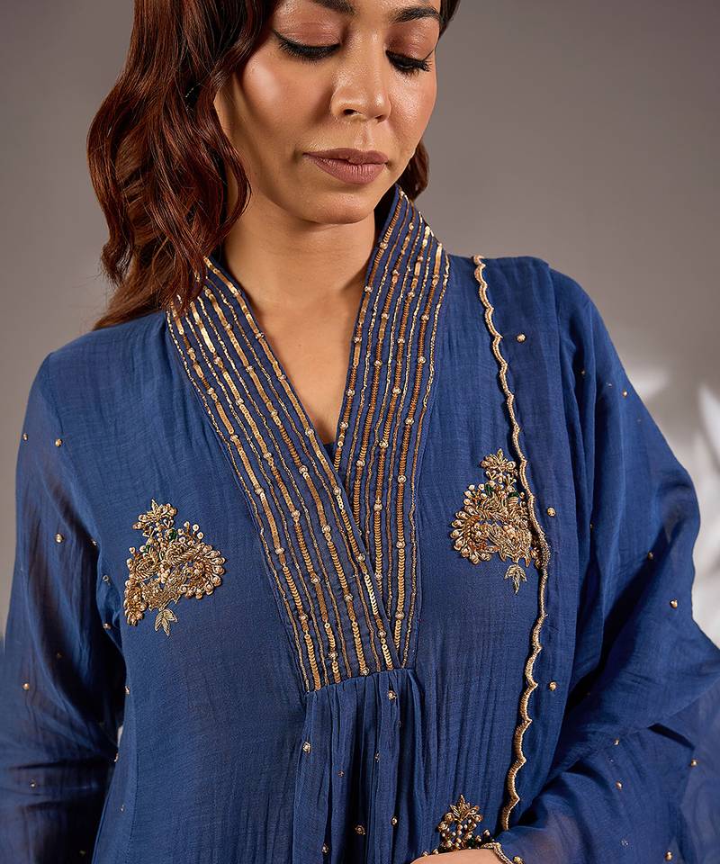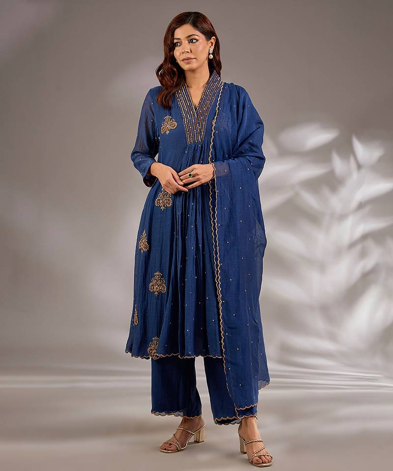 | Product Name | Blue Embroidered Chanderi Kurta Set | |