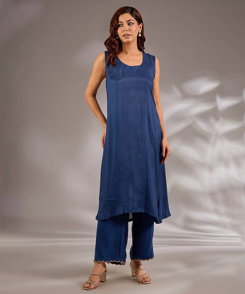 Blue embroidered chanderi kurta set