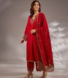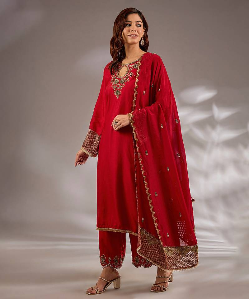 | Product Description | This Red Embroidered Silk Kurta Set Exudes Timeless Sophistication With Its Smooth, Luxurious Fabric And Graceful Drape. Intricate Embroidery Adds A Festive, Artisanal Touch, Enhancing Its Classic Ethnic Charm. Perfect For Weddings, Celebrations, And Special Occasions, It Blends Comfort With Elegance, Creating A Stylish And Refined Ensemble.